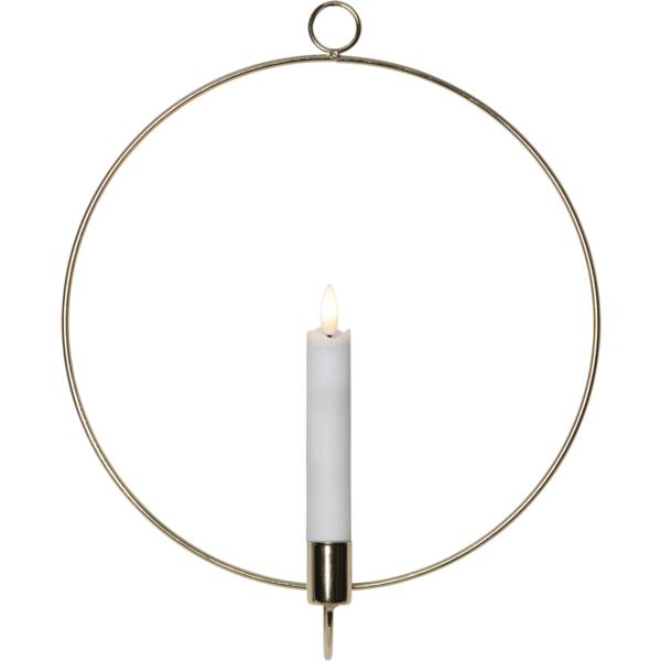 28cm grosser Leuchterring aus vermessingtem Metall. In der Mitte ist