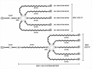 ![]() Das System LED ist ein Sortiment aus professionellen LED-Lichterketten; bestimmt für Verbrauchermärkte. Es ist eines der flexibelsten und energiesparendsten Systeme für dekorative Außenbeleuchtung. Das System LED ist erweiterbar und enthält ein weites Sortiment an Ketten, Icicles, Vörhangen, Netzen, Lichtschläuchen und Accessoires. Alle Produkte des Systems sind universell miteinander kombinierbar. Die verwendeten Leuchtdioden / LED's sind hochwertig und besitzen eine durchschnittliche Brenndauer von ca. 50.000 Stunden. Das System LED ist so konstruiert, dass so genannte "EXTRA"-Einheiten miteinander verbunden werden und durch ein "START"-Kabel mit Strom versorgt werden. Diese "START"-Kabel sind als separate Einheit zu erwerben. Artikel mit der Aufschrift "EXTRA" enthalten KEIN "START"-Kabel, sondern gelten als Erweiterung. Die maximale Leistung des Systems beträgt 400 W oder 100 System-Meter. ![]() |